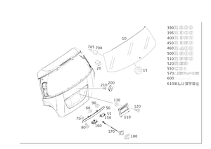Dome lamp, left rear e15/8,. 1-pin ff6.3. Rear foglamp plug-connection e3/1. 1-pin ff6.3. Reversing light e7. 1-pin ff6.3. Side window left x39/32. 1-pin ff6.3. Heated rear window r1/1. 1-pin ff6.3. License plate lamp. 1-pin ff6.3. Parking brake control. 1-pin ff6.3. Plug connection, interference suppressor. 1-pin ff6.3. Horn. 1-pin ff6.3. Brake fluid control. 1-pin ff6.3.